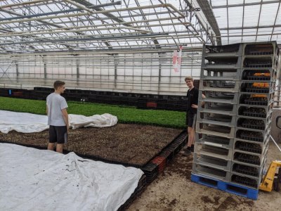 - Zaaien : de zaden worden in de tray gezaaid met de zaaimachine en de pallets gaan de kiemcel in.